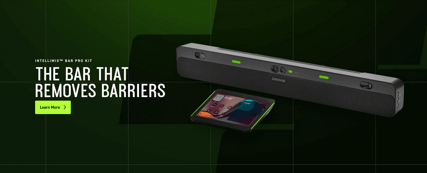 Whether you’re standardising meeting spaces across an enterprise or upgrading collaboration technology for hybrid work environments, the Shure IntelliMix Bar Pro offers a future-ready solution that simplifies deployment and enhances engagement. With integrated audio and video, intelligent AI-driven features and enterprise-grade management tools, it delivers consistent performance and dependable experiences in medium to large meeting rooms — helping teams collaborate more effectively and IT teams manage with confidence.